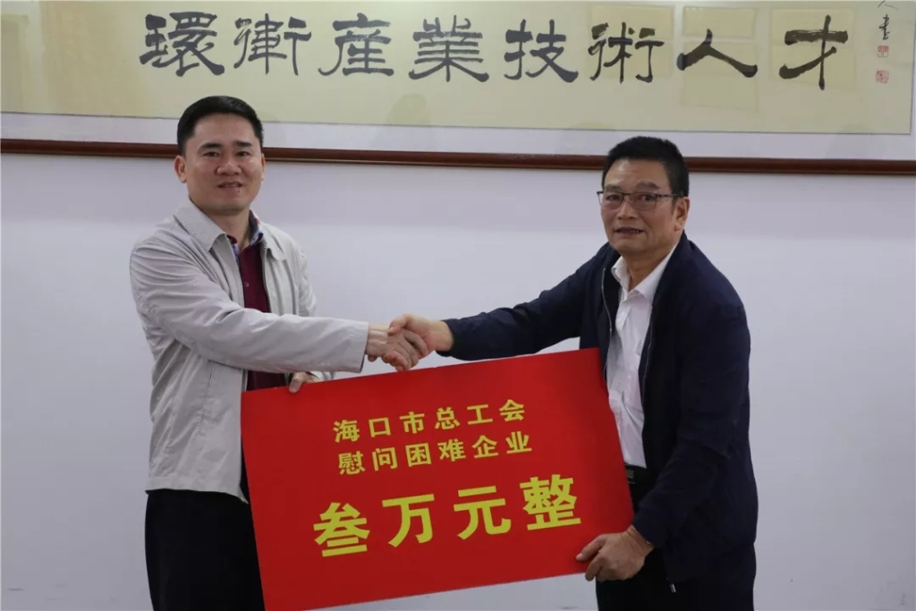 1月17日,在新春佳节即将来临之际,海口市总工会常务副主席刘川海、部长覃湘,市财贸工会主席李东安、龙华区总工会常务副主席周运方来到海口龙马环卫公司,送上困难企业慰问金3万元,并看望慰问困难环卫职工代表,将党与政府的关怀及工会组织的温暖送到环卫工人群体的心中。