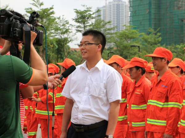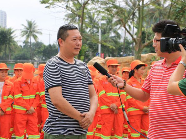 记者采访海口龙马环卫总经理罗福海