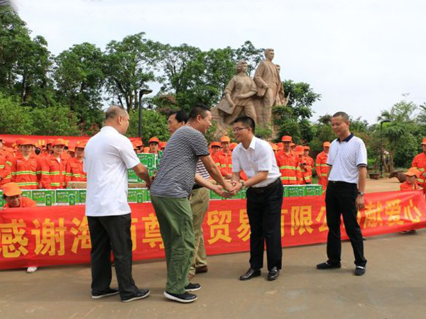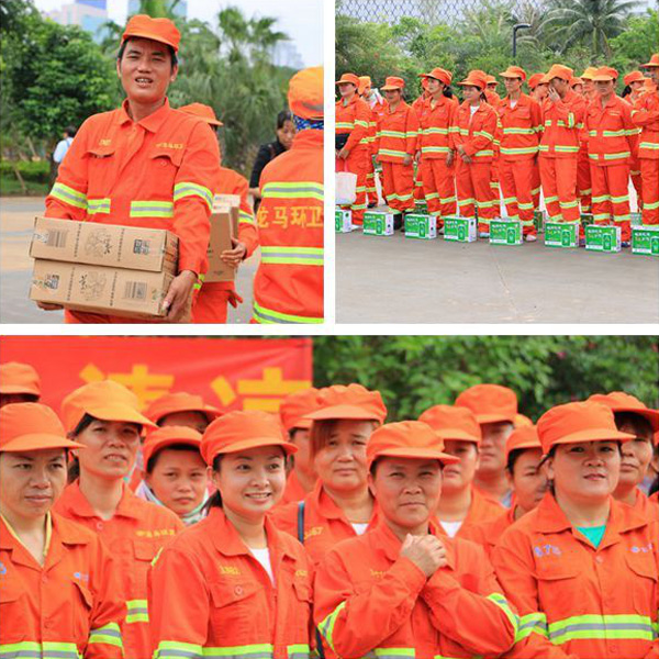 “夏季高温,环卫工人工作特别辛苦,海南尊品贸易有限公司也想为龙华区的环卫事业做点贡献,为环卫工人做点实事。作为企业,也只能尽自己的微薄之力,表达自己的敬意和感激之情。”海南尊品贸易有限公司总经理李泓良说。龙华区环卫局副局长林声沧表示,此次发起的爱心活动,是社会力量关爱环卫工人的典型活动,把环卫工群体作为关爱对象,可以说是对环卫工人长期默默奉献的肯定。海口龙马环卫总经理罗福海代表公司环卫工人向爱心企业表示感谢,希望环卫工人能感受到社会的关心和关爱,倡导市民们爱护环境,不要乱扔垃圾,以减轻环卫工人的工作负担。海口龙马环卫一中队保洁工人周菊姨接过爱心人士送给他们的防暑用品时连连称赞:“感谢爱心企业给我们送来防暑用品,我们会怀着感恩的心,把城市打扫干净。”