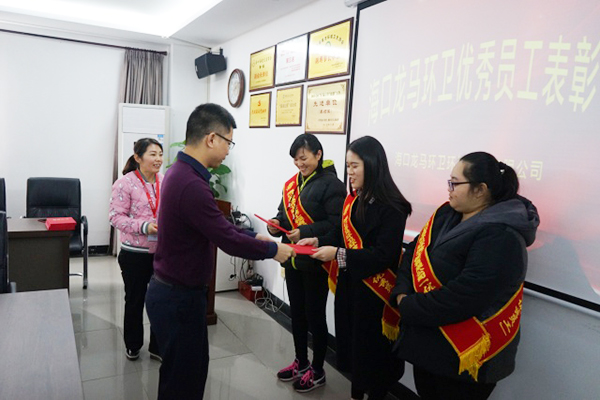 海口龙马环卫公司总经理罗福海,常务副总经理王灿锋,副总经理符气南、副总经理张鑫如及部门负责人出席了颁奖会议,人力资源部部长张初德主持会议,宣读了表彰人员名单。