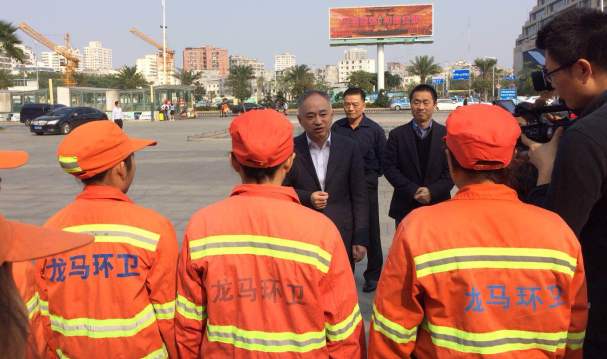 春节前夕海口市市长丁晖慰问海口龙马环卫公司一线环卫工人
