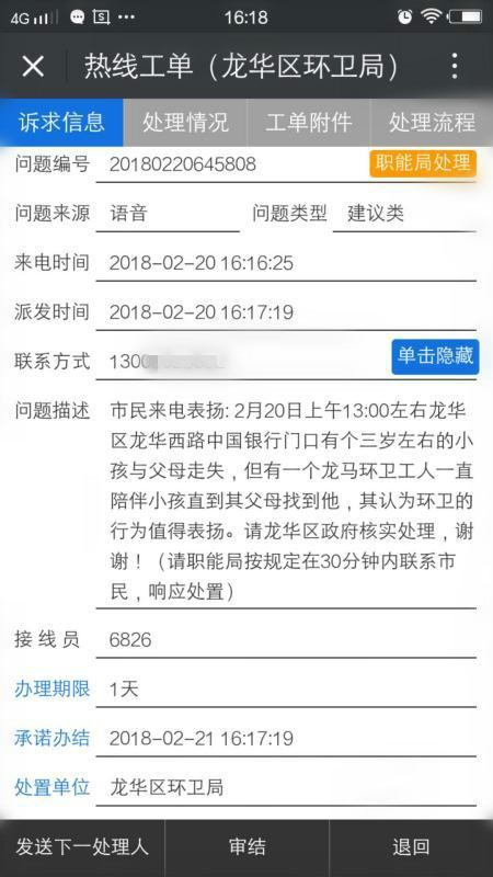 12345热线也打来热线感谢这位环卫工人