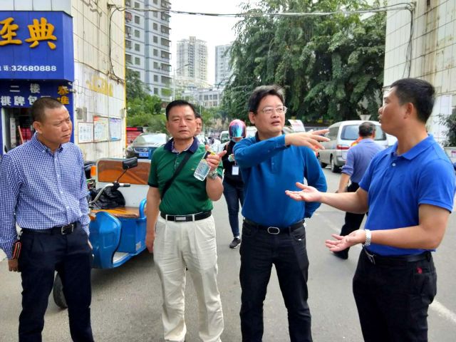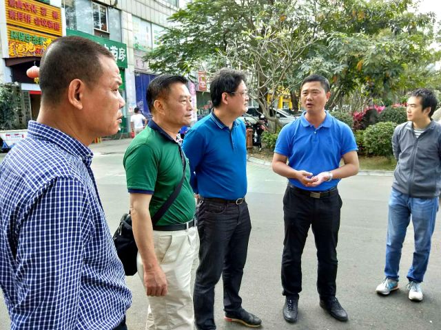 龙华区副区长林山、区环卫局局长吴雷及海口龙马环卫公司副总经理符气南、副总经理助理陈伟在金丘街游客滞留服务站落实环境卫生保障工作。