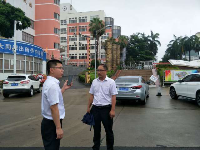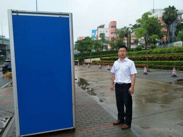 公司常务副总经理王灿锋带队城区作业部部长曾路生在侨中考点指导工作,并查看新增设的垃圾桶和移动公厕的安装情况
