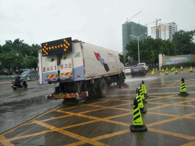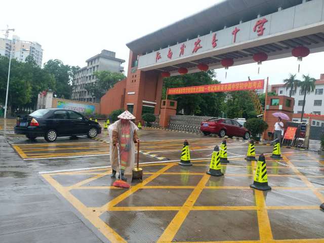 受第四号台风带来的暴雨影响,海口多路段出现积水现象。6月5日,海口龙马环卫公司及时启动应急预案,增派人手,对考点周边的积水路段及时清扫,组织人员定时对考点周边的雨水篦子进行清掏。同时,调动高压清洗扫路车、洒水车、路面养护车等机械化设备对道路泥沙进行冲洗保洁,全力以赴为高考期间环境卫生保障“护航”。