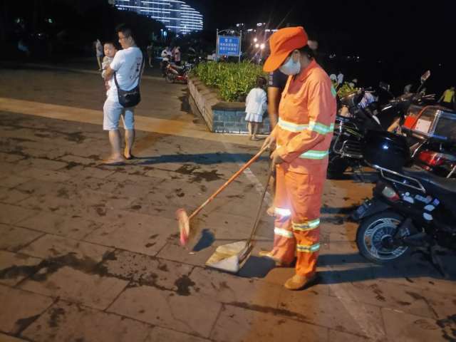 昼夜奋战 迅速恢复 海口湾环境卫生保障工作