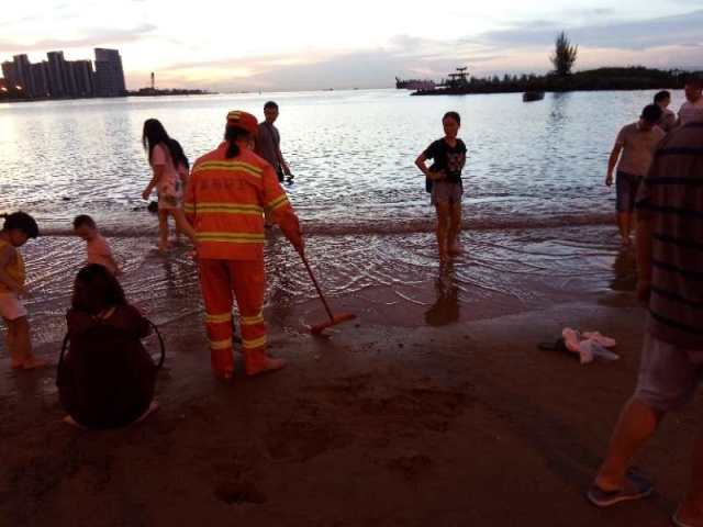 端午节当天,公司增加人员,加大巡回保洁力度,领导带队巡查指导工作,全力保障辖区市民“洗龙水”周边环境卫生整洁。当“洗龙水”的人潮渐渐散尽,沙滩上到处都是狂欢后的弃物,海口龙马环卫公司的环卫工人立马投入清理状态。