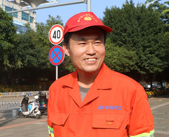 赖国平是一名优秀的环卫人,他在平凡的岗位上干着平凡的工作,一年四季日晒雨淋,日复一日坚持着同样的工作,“双创”期间,环卫工作量不断加大,步入五旬的赖国平再苦再累,从不抱怨,坚守岗位,尽职尽责坚守在自己的岗位上,体现的是环卫人不平凡的精神,展现我们环卫人默默无闻,无私奉献的风貌。他说:每天虽然辛苦忙碌,但把每一各角落扫干净了,城市环境更好了,市民生活也舒心舒适,自己也觉得自豪,有成就感。
