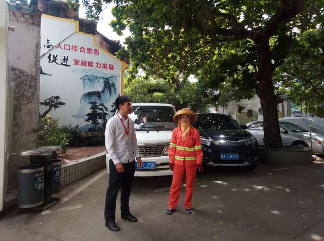 海口龙马环卫公司城区作业部副部长吴玉菊、督察管理部副部长苏仁洪、城区作业部部长助理杨泽彪