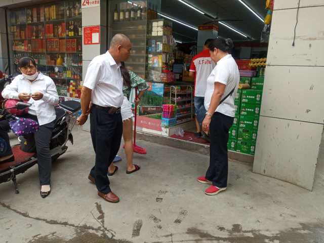 及三片区经理张文甫在山高村巡查卫生情况,并加强劝导周边商户落实“门前三包”责任
