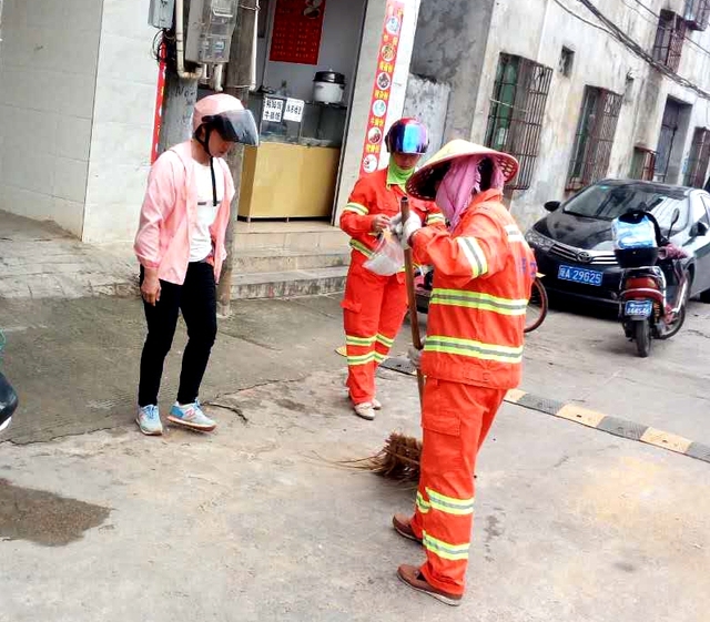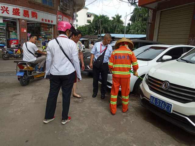 海口龙马环卫公司城区作业部副部长吴玉菊带队三片区经理陈荣经、