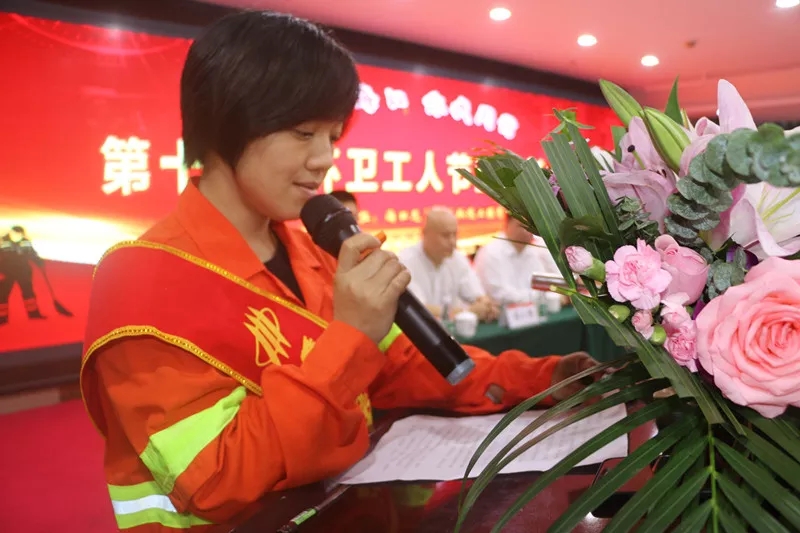 环卫工人李蔓代表优秀环卫工人也做了表态发言。