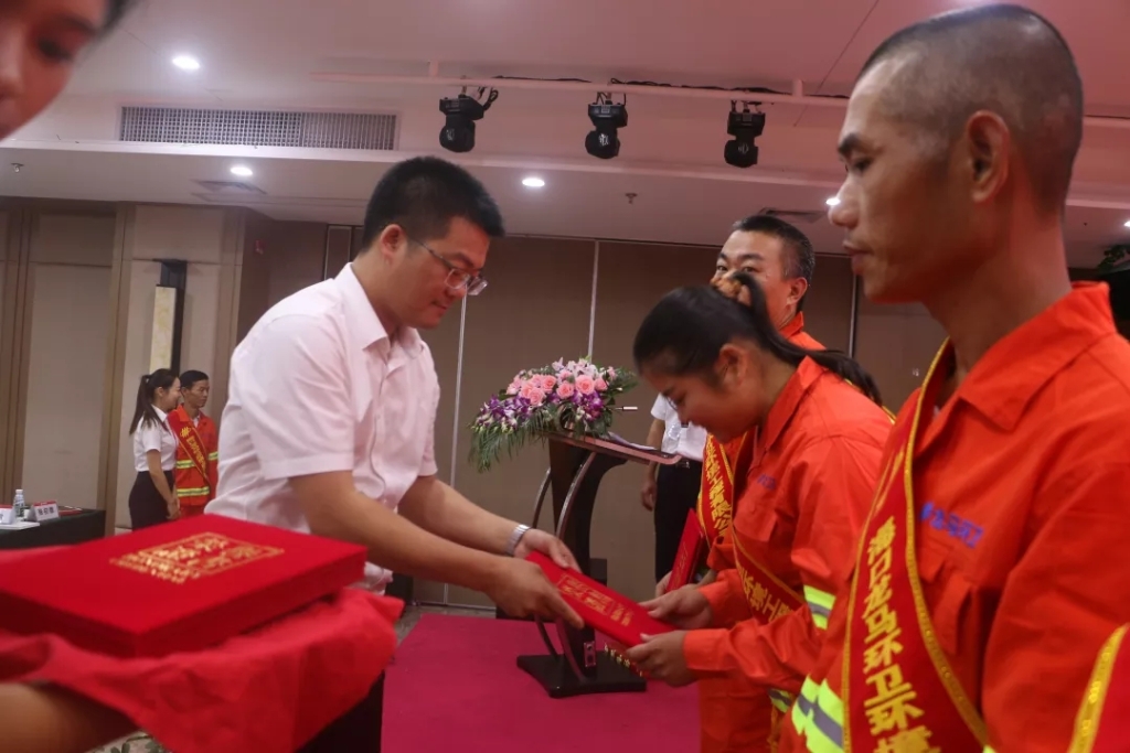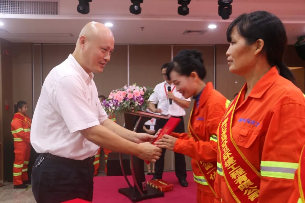 龙华区环卫局副局长王念宇向优秀员工颁奖