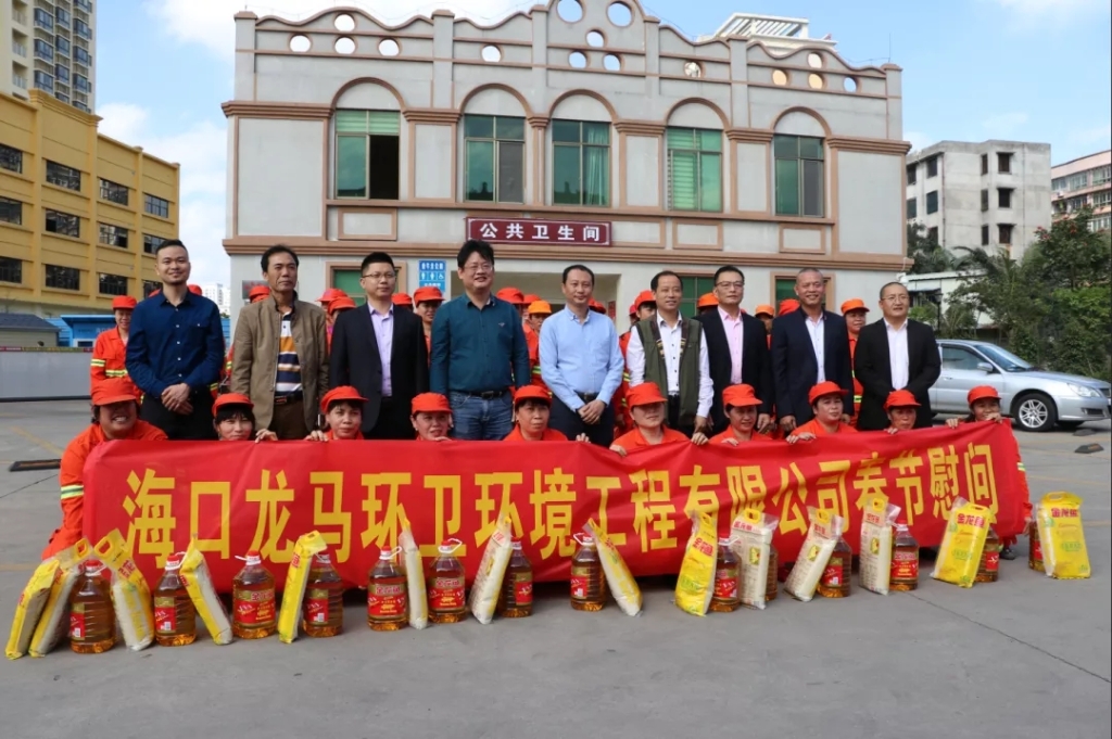 海口龙马环卫公司总经理王灿锋、副总经理符气南、总经理助理陈伟、城区作业部部长马志强等领导参加慰问活动。