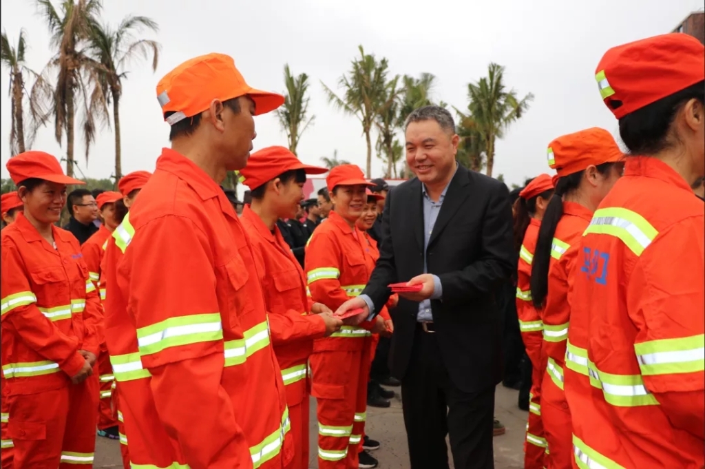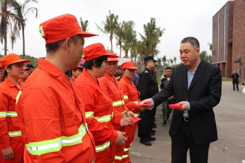 无论在什么时候,身穿橘色制服的环卫工人始终奋战在城市的街头巷尾、角角落落,用辛勤的汗水和勤劳的双手换来了城市的清洁美丽。为了给广大市民营造良好的市容环境,环卫工人放弃与家人团聚,春节期间依然坚守岗位,在游客中心区领导班子对海口龙马环卫公司20名环卫工人集中进行了慰问。