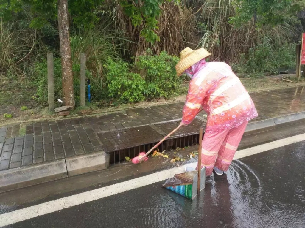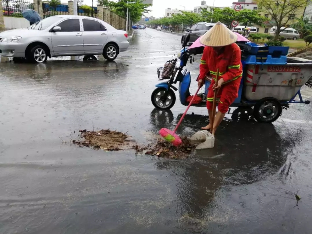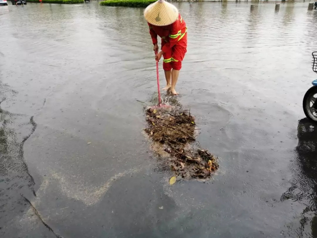 面对突发天气,海口龙马环卫公司立即启动暴雨天气应急预案,待雨小后,迅速组织队伍深入大街小巷,只见各片区环卫工人穿上雨衣,套上雨鞋,迅速投入到市容环境恢复工作中,他们弯着腰用扫帚、用手将雨水篦子上积塞的落叶、垃圾清理干净,同时抓紧对重点路段路面及两侧路沿的淤泥、漂浮垃圾、断枝落叶等进行全面清理。海口龙马环卫公司共出动环卫工人1900余名,机械化清扫车24辆,垃圾清运车23辆,突击清理道路排水口5000余个,清运道路排水口垃圾约4吨,保障城市道路排水口无垃圾杂物堵塞,道路迅速恢复常态,垃圾及时清运。