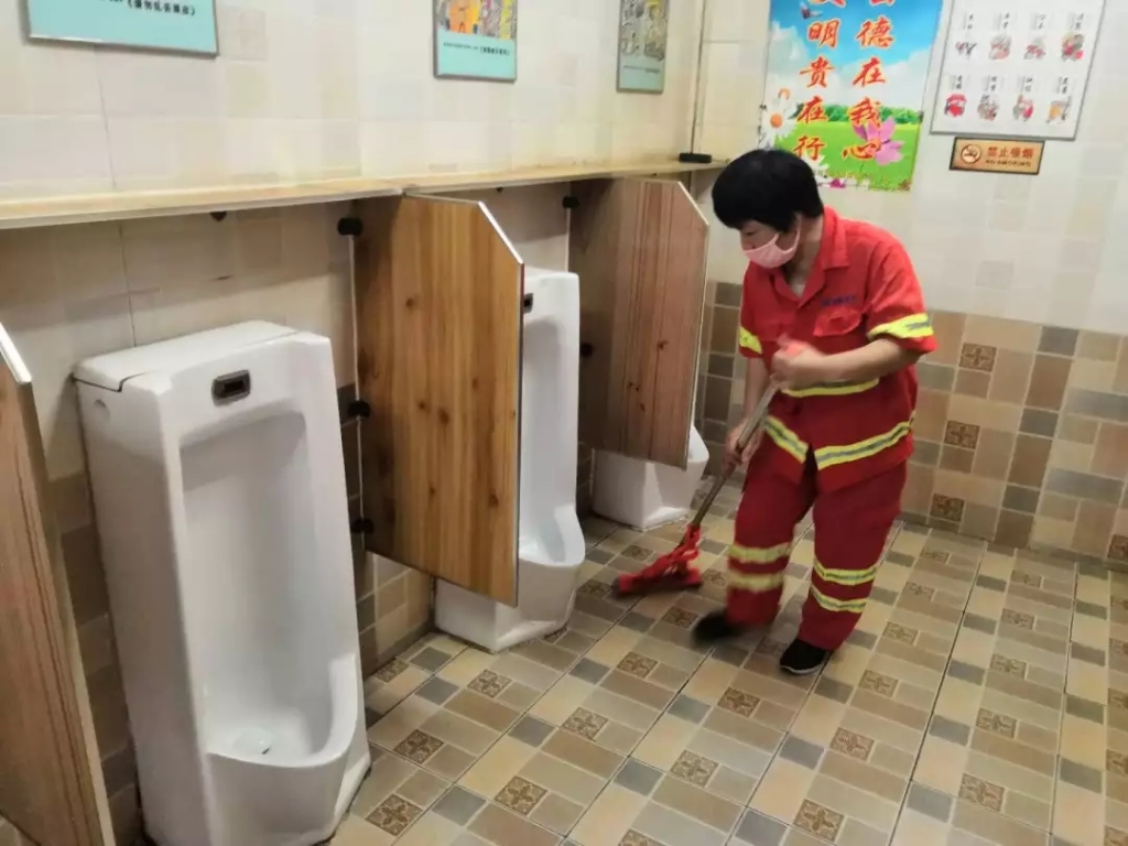 公厕保洁人员严格按照公厕管理作业质量标准做好日常保洁及维护管养工作,做到厕内无异味、无烟头、无污迹,墙面、门窗、照明等设施完好,及时维修更换破损设施;厕外5米范围内做到无垃圾、无污水,清吸作业后,及时清洗井盖周边,保持环境干净整洁;公厕保洁人员穿着工服上岗,确保公厕正常对外开放,给市民提供干净舒适,文明和谐的如厕环境。