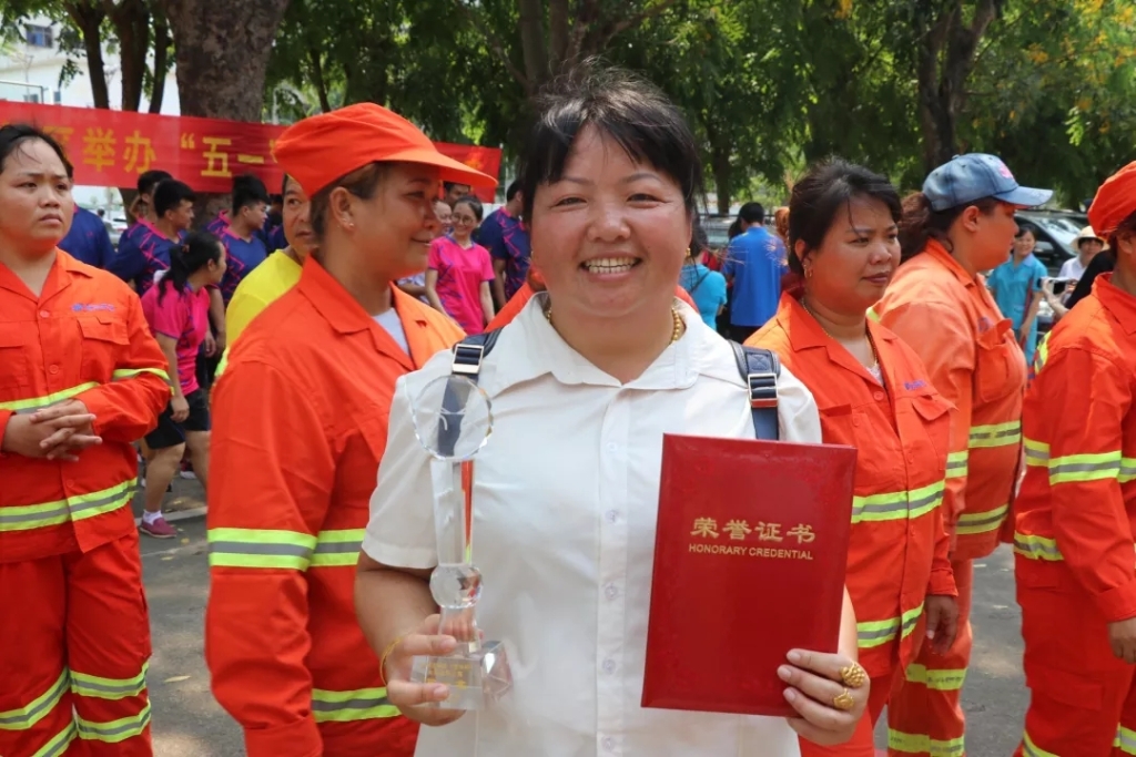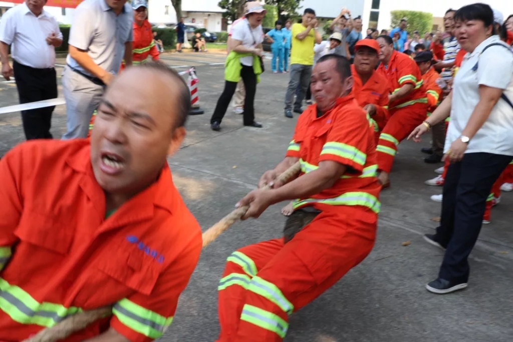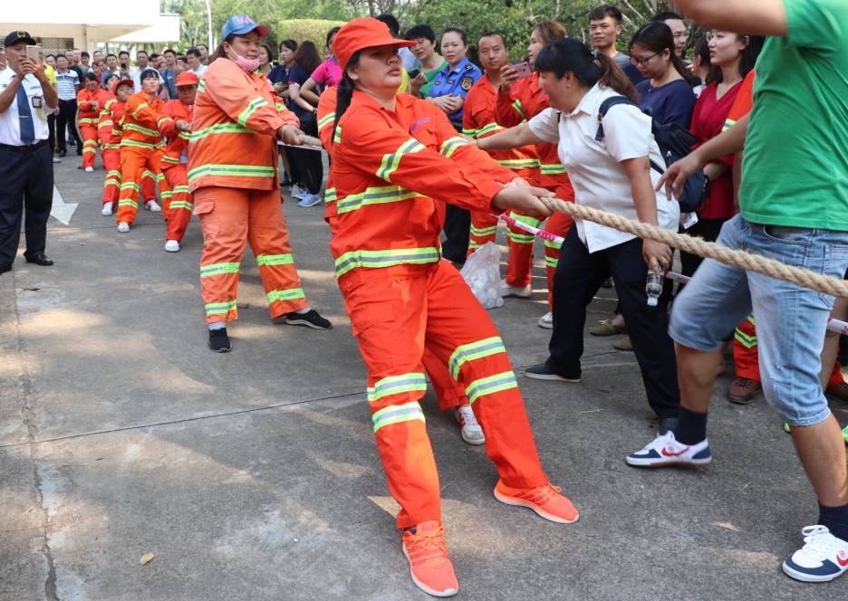 当比赛的哨声响起,我们的环卫工人们双手紧拽长绳,卯足了劲憋红了脸,拼命将绳子往身后拉,小编在旁边看着大家拼尽全力的样子,都忍不住挽袖呐喊了起来。经过一番焦灼的比拼,我们的环卫工人们夺得女子组第一名!