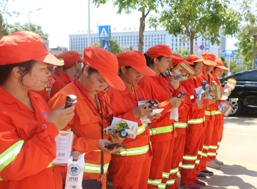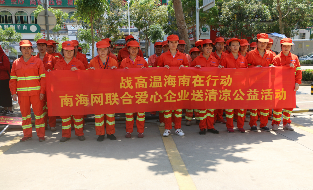 4月23日上午,南海网联合椰屿坊(奥力脆)冰淇淋、海南鑫杰科技两家爱心企业在海口龙马环卫公司金牛北转运站开展“战高温海南在行动”送清凉公益活动,向海口龙马环卫公司一线环卫工人送上雪糕、小礼品等爱心慰问品,为坚守在高温一线的环卫工人们送上清凉与关怀。