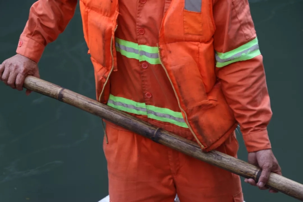 在河道海岸上,有这么一群劳动人民,他们手执长杆在船上、岸边不停地打捞着垃圾。夏天,热浪滚滚,他们顶着烈日作业,身上的衣衫经常是干了湿、湿了干;冬天,寒风刺骨,他们冒着寒风打捞,全然不顾手上裂开的一道道口子。他们用坚守,换来了这一汪碧水。