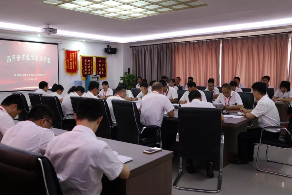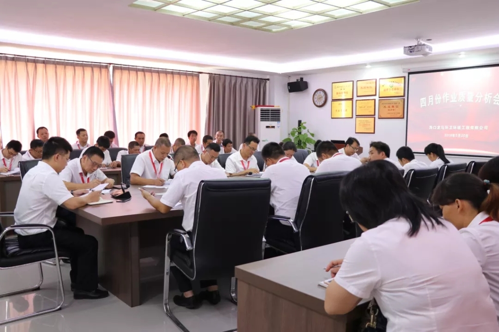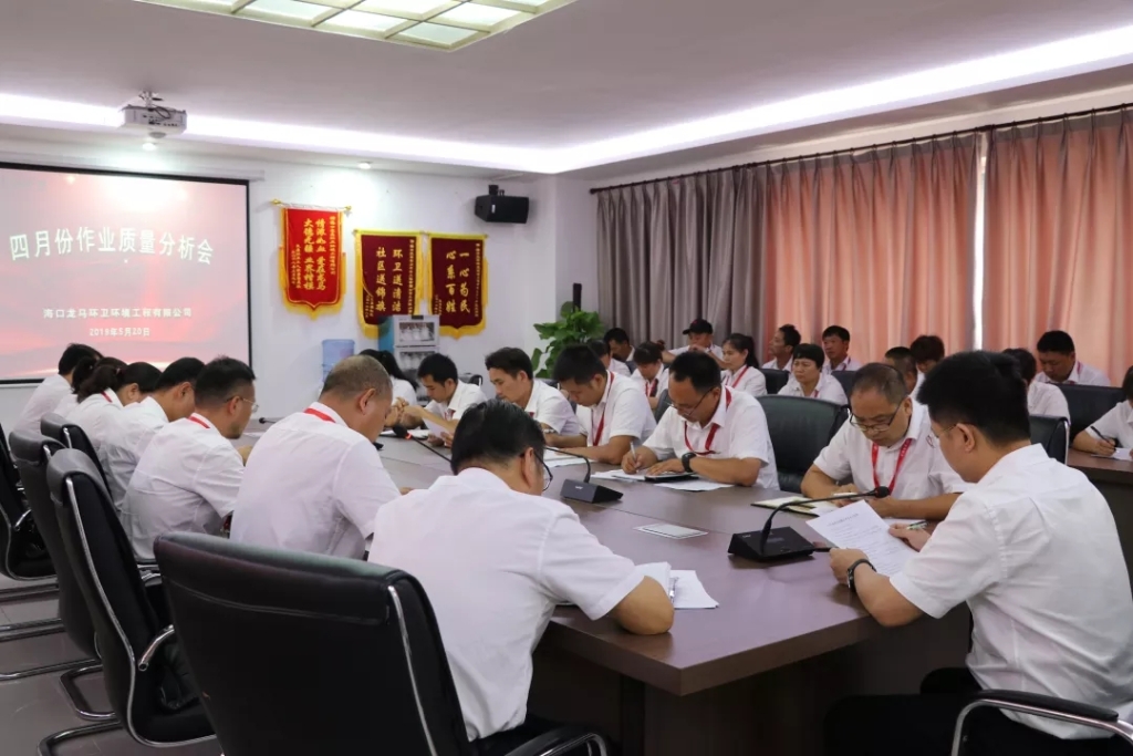 5月20日下午2点30分,海口龙马环卫公司组织召开4月份环卫作业质量分析会,海口龙马环卫公司总经理王灿锋,副总经理符气南,副总经理曾路生,督察总监陈伟,总经理助理黄文锋及生产各部门负责人,各片区、水域及各路段、公厕负责人,各车队负责人参加会议。会议由海口龙马环卫公司督察总监陈伟主持。