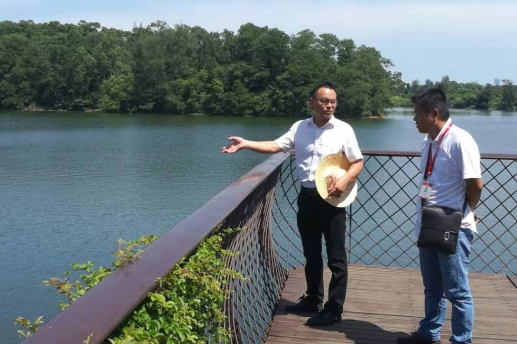 乡镇作业部部长廖万凯、五片区经理吴盛镇在沙坡水库周边巡查指导工作