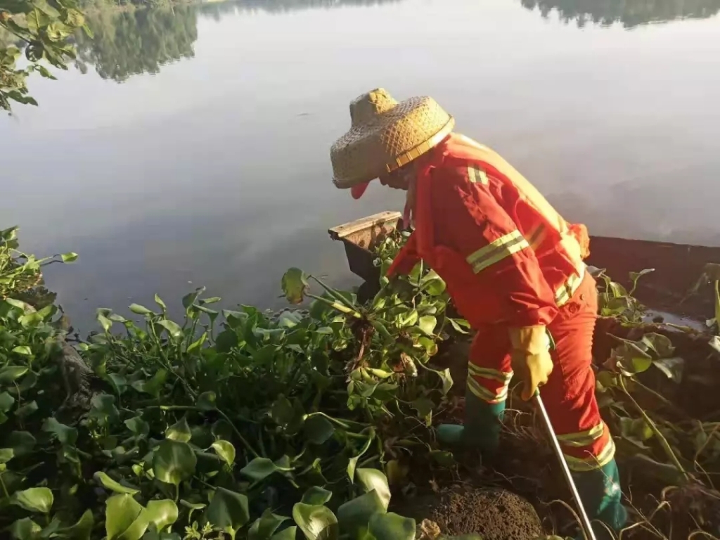 今日,海口龙马环卫公司水上环卫工人与路段保洁人员上下联动,分段定人划区域及时对沙坡水库、海马沟、苍西沟等水域的水浮莲及水面漂浮物进行打捞、清理。其余水域的环卫工人对责任区域内的水面及沿岸环境卫生加大巡查力度,全面整治清理,通过及时打捞水面漂浮物、拾捡沿岸垃圾、清除周边杂草、清理卫生死角,共同完成打捞垃圾的清扫转运及周边保洁任务,守护一方碧水蓝天。