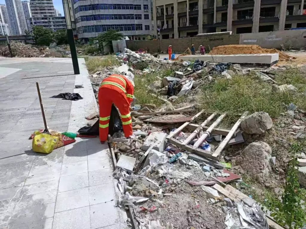 副总经理曾路生带队在盐灶路拆迁工地卫生保洁落实情况