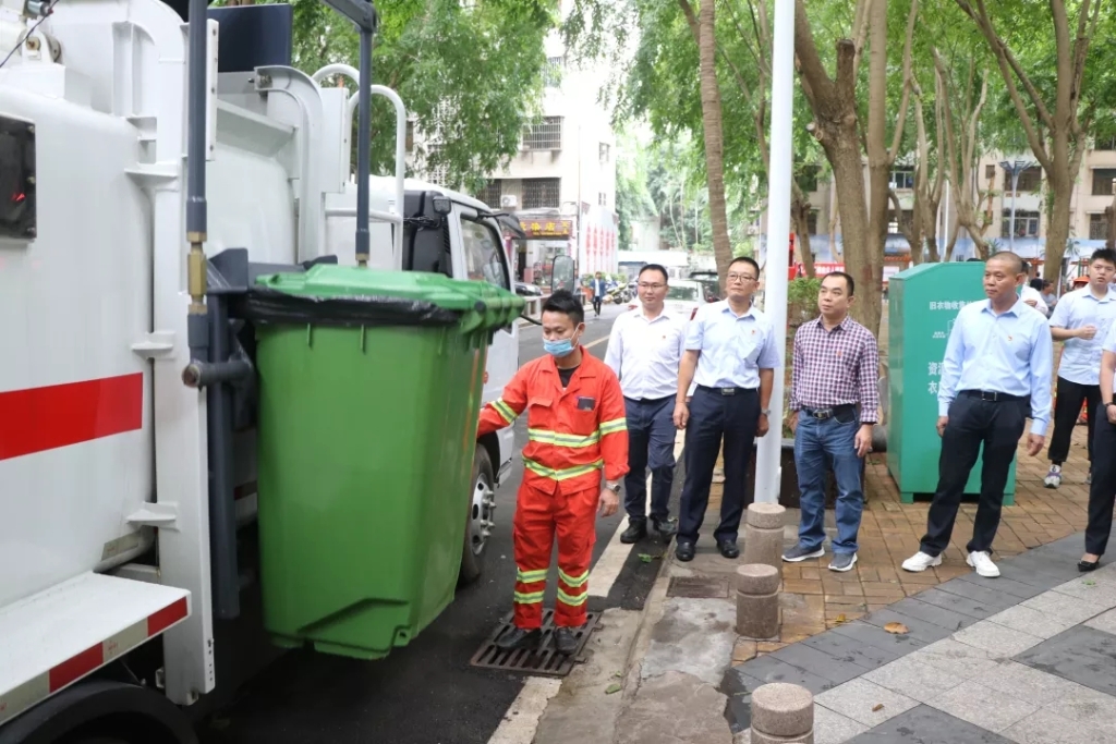 党员先锋们参观厨余垃圾车收运厨余垃圾