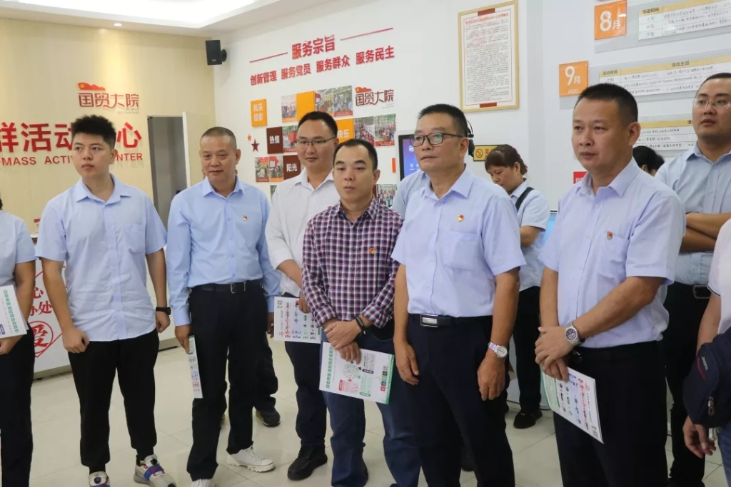 公司党支部书记符气南、副书记陈伟带队公司党员们听垃圾分类专员讲解垃圾分类投放