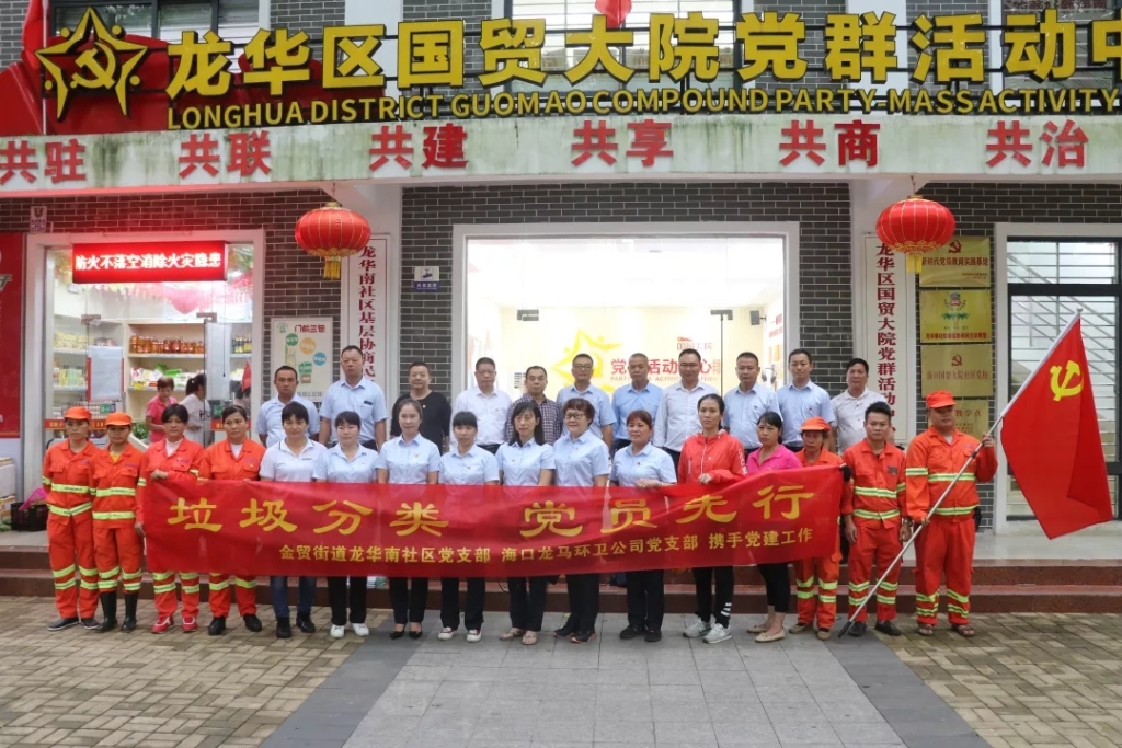为营造垃圾分类就是新时尚的良好氛围,充分发挥党员先锋模范作用,10月19日上午,海口龙马环卫公司党支部书记符气南、副书记陈伟带领公司全体党员联合金贸街道龙华南社区党支部书记王康北及党员在国贸大院开展“垃圾分类,党员先行”主题党日活动,支部党员、入党积极分子参加此次活动。本次主题党日活动设有发放垃圾分类宣传手册、桶前值守、分类投放、观看分类视频四项内容。
