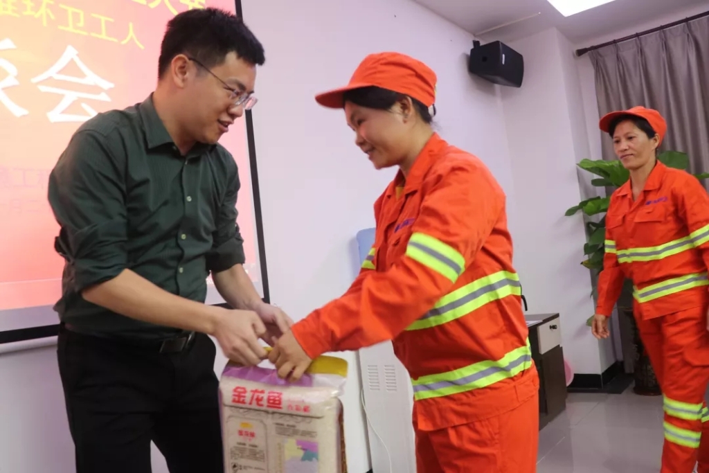 总经理陈志坚、副总经理符气南、廖万凯向参加座谈会的困难环卫工人发放了节日慰问礼品并送上了节日的祝福,并对他们辛勤劳动和默默付出表示感谢。