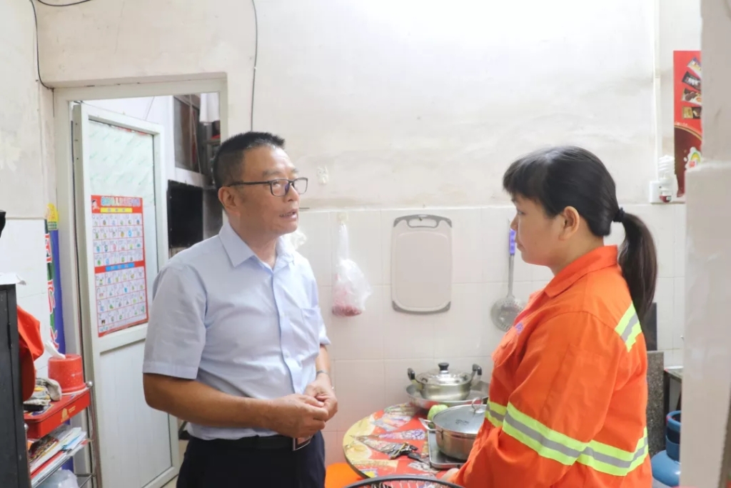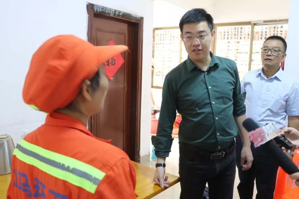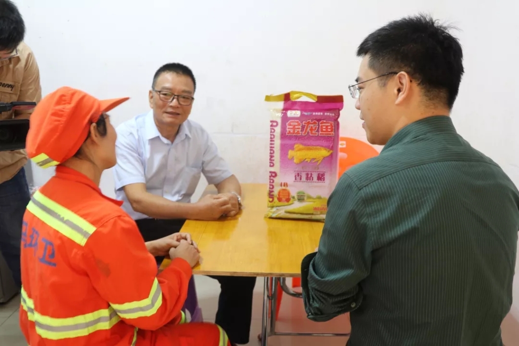 在走访入户慰问过程中,总经理陈志坚、副总经理符气南与环卫工人亲切交谈,详细询问了他们的身体、生活、工作情况,并对他们在岗位上辛勤工作、为海口环境卫生作出的积极贡献给予充分肯定,并鼓励他们树立信心,乐观生活。