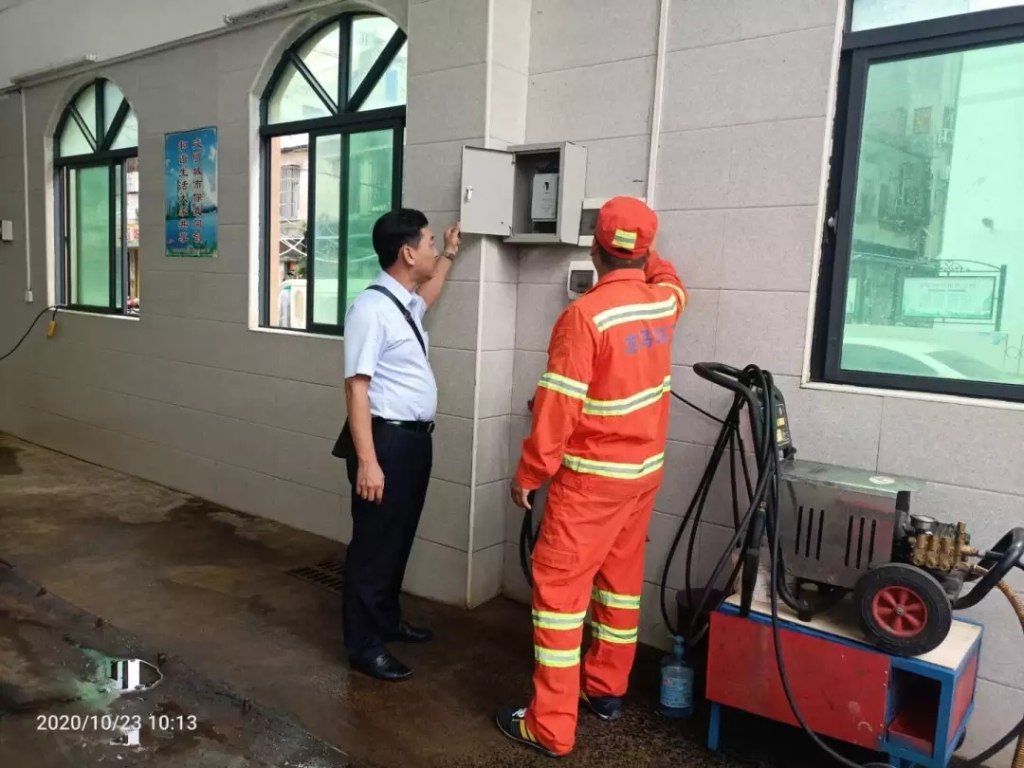 公司各片区加强风险排查和隐患整改,并结合实际,提前做好转运站、公厕、果皮箱等设施设备的安全排查工作。对果皮箱、公厕、转运站所有门窗进行固定。并及时清运转运站,垃圾桶、果皮箱、公厕化粪池等地的垃圾在台风来临前全部清空。