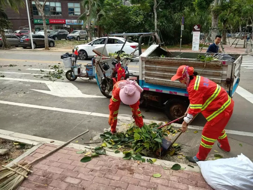 今一大早,公司各级领导就下沉一线、靠前指挥。要求各片区管理人员密切注意环卫工人的安全工作,积极巡查路段,向所有的环卫工人传达防汛、防台采取的具体措施情况,务必提高防汛、防台应对能力,确保人员绝对安全,全力做好防台防汛环卫保障工作。
