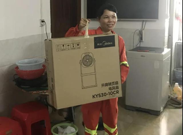 看着手上的慰问品,王来姑觉得很暖心,她说,这都要感谢公司安排员工在居住地就近工作的举措,让她有更多的时间照顾孩子的日常生活,也让她感受到在龙马环卫大家庭工作的温暖。