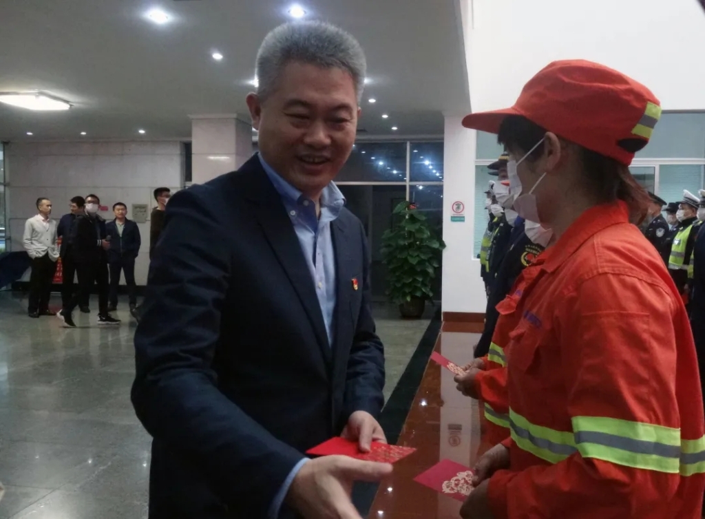 龙华区区委书记、区政府区长邓立松表示:“春节是环卫工人一年中最繁忙的时候,在万家团圆的美好时刻,环卫工人却仍然坚守岗位,大家不分昼夜,为美化、净化龙华环境默默无闻的工作。感谢一线环卫工人为龙华区巩固提升“巩文、巩卫”工作和疫情防控工作所做出的积极贡献。新春佳节来临之际,我代表区委、区政府对大家的辛劳付出表示衷心的感谢,并致以崇高的敬意,祝愿大家新年快乐、家庭幸福、万事如意。”