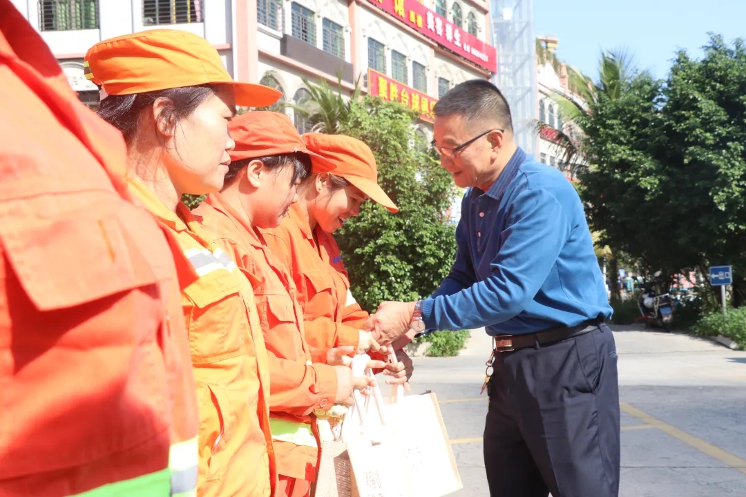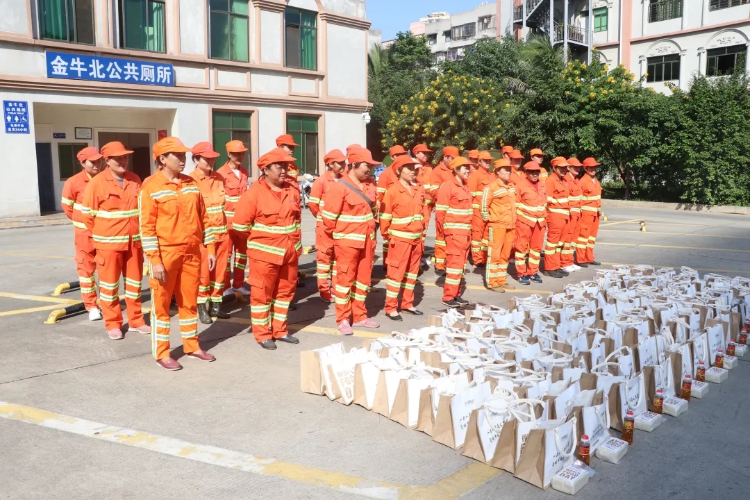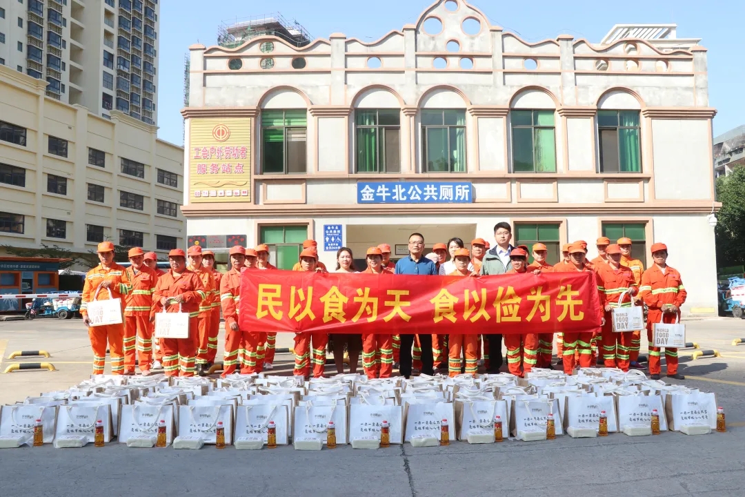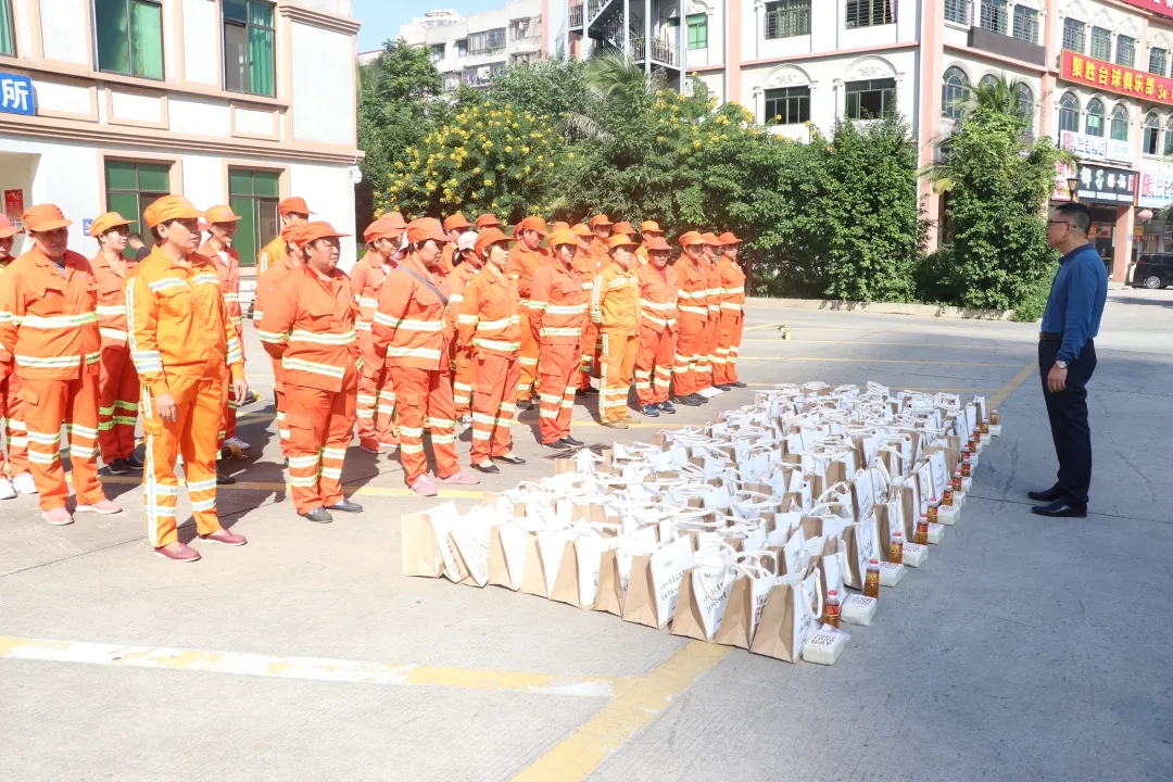11月26日,海口市发展和改革委员会为忙碌在城市保洁第一线的环卫工人送上一份关爱。为烈日下依旧辛勤的身影们送来爱粮节粮宣传手册100份、碾米、花生油等粮食254份,希望他们在忙碌之余照顾好自己,享用这份饱含谢意的美食的同时,积极参与营造厉行节约、反对浪费的浓厚社会氛围,此外,还号召大家积极行动起来,携手共建爱粮节粮型社会。