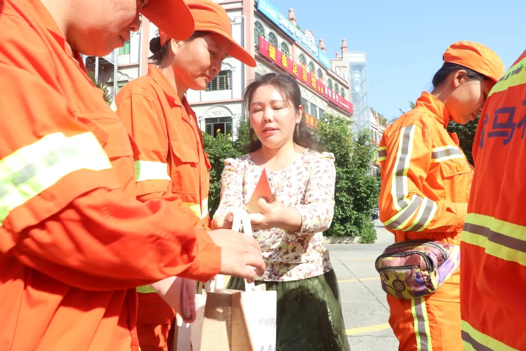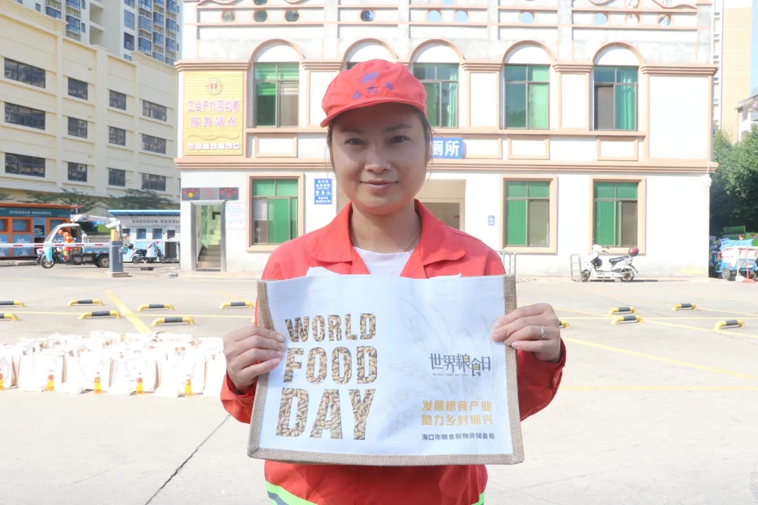 世界粮食日 海口市发展和改革委员会向环卫工人 普及爱粮节粮、营养健康知识