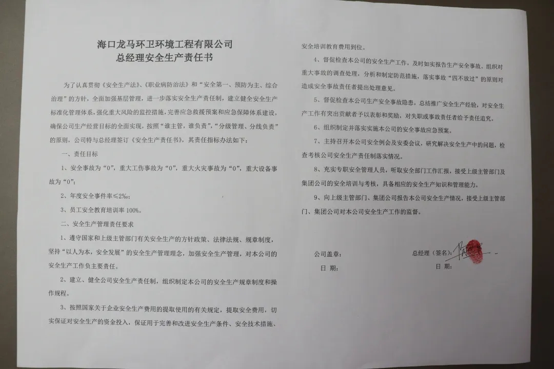 新年已开局 安全须先行 海口龙马公司签订2022年度安全生产责任书