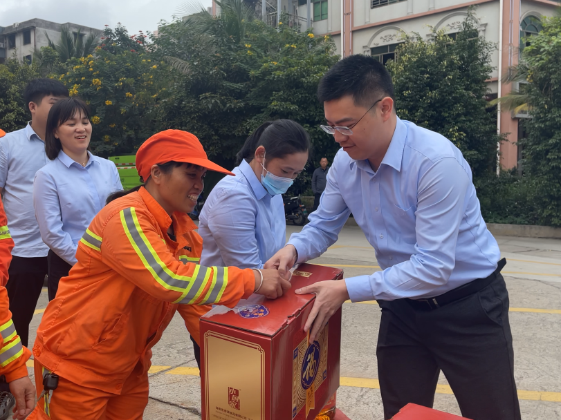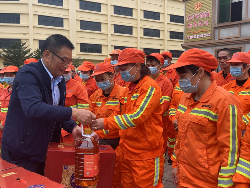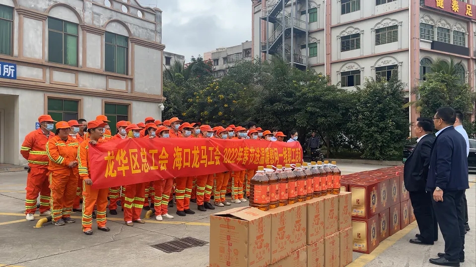 海口龙马环卫公司一线环卫工人常年坚守一线,他们默默付出、无私奉献,用点滴力量构筑起了环境卫生和防控疫情的坚固防线,充分体现了劳动者的担当与作为,作为职工的娘家人,龙华区总工会一直心系奋战在一线的环卫员工,在新春佳节来临之际为他们送上节日祝福,把党和工会组织的关心送到一线困难环卫工人手中。