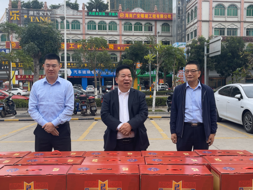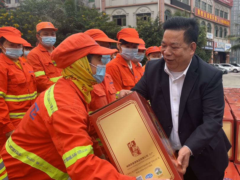海口龙马环卫公司总经理陈志坚发放慰问品