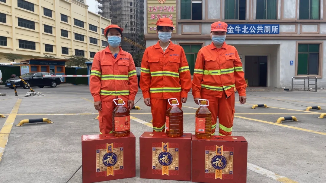 慰问活动现场,龙华区总工会常务副主席周运方表示“龙华区的环境卫生离不开一线环卫工人的辛勤劳作,感谢大家过去这一年为辖区的城市建设始终奋战在一线,并取得了可喜的成绩,最后给大家拜个早年,祝愿大家节日快乐,身体健康,家庭幸福”。