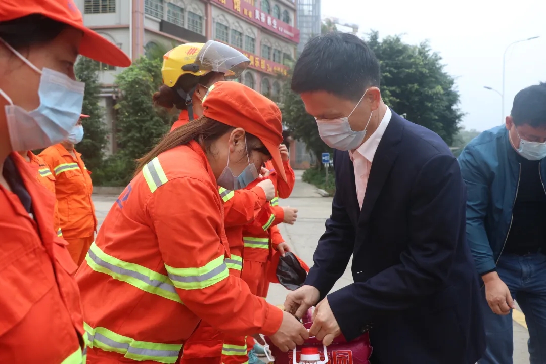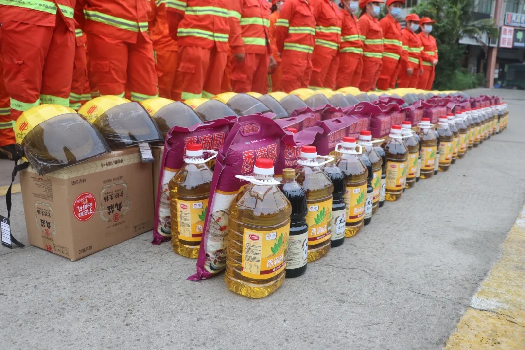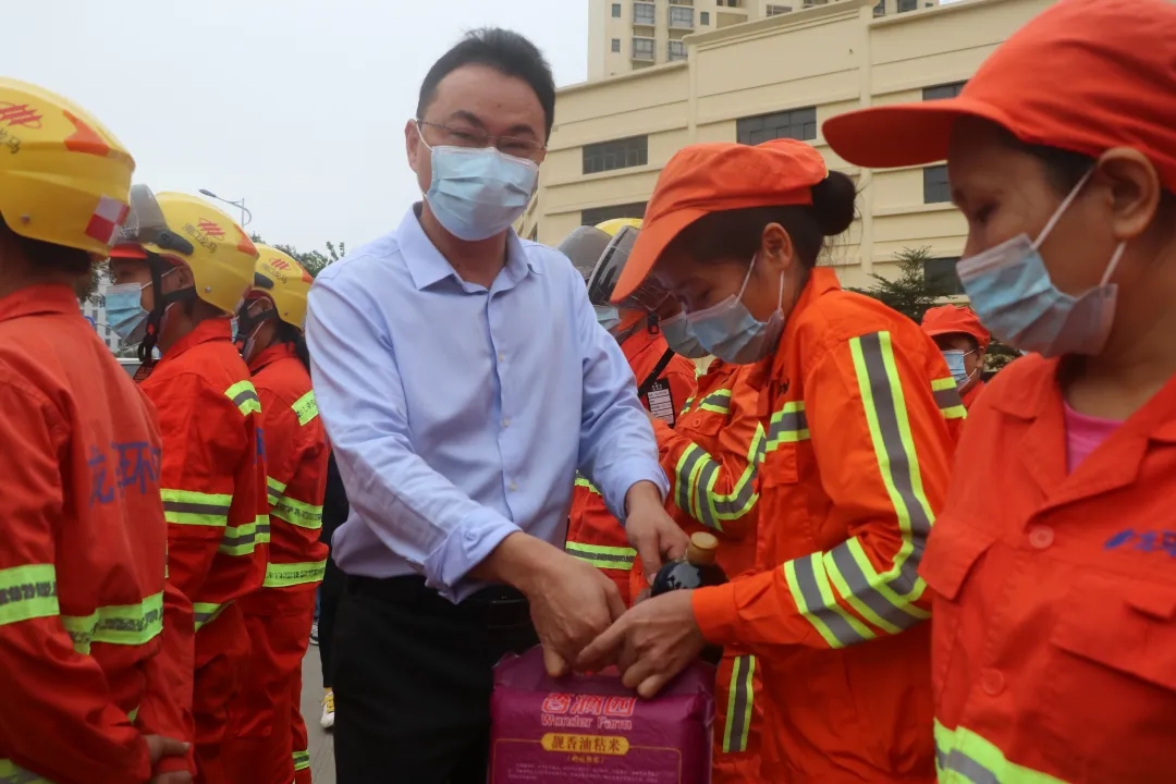 龙华区环卫局局长吴雷为环卫工人发放米、油