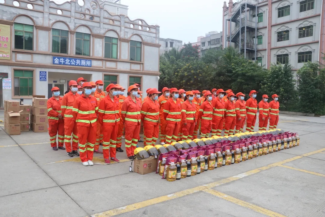 春节前夕,过年的氛围越来越重,1月25日,龙华区环卫局局长吴雷、副局长王念宇,海口龙马环卫公司总经理陈志坚、副总经理符气南、廖万凯、督察总监陈伟等一行领导,在金牛北三位一体向公司一线环卫工人发放米、油等春节慰问品,并为他们送去新春祝福,感谢环卫工人一年来为城市环境整洁工作做出的贡献。