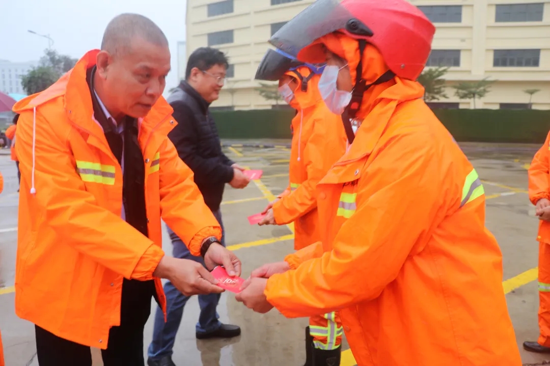 龙华区环卫局副局长吴盛林为一线工人送上红包及新春祝福
