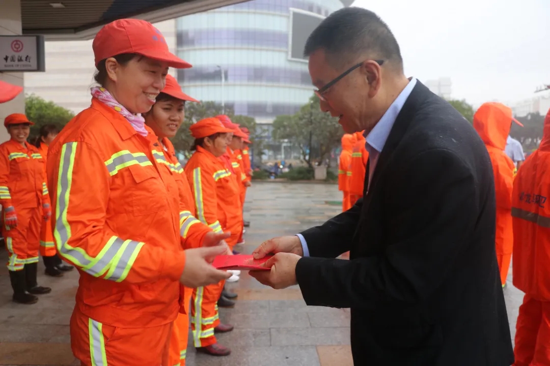 大年初一龙华区环卫局领导为坚守岗位一线环卫工人发放春节红包