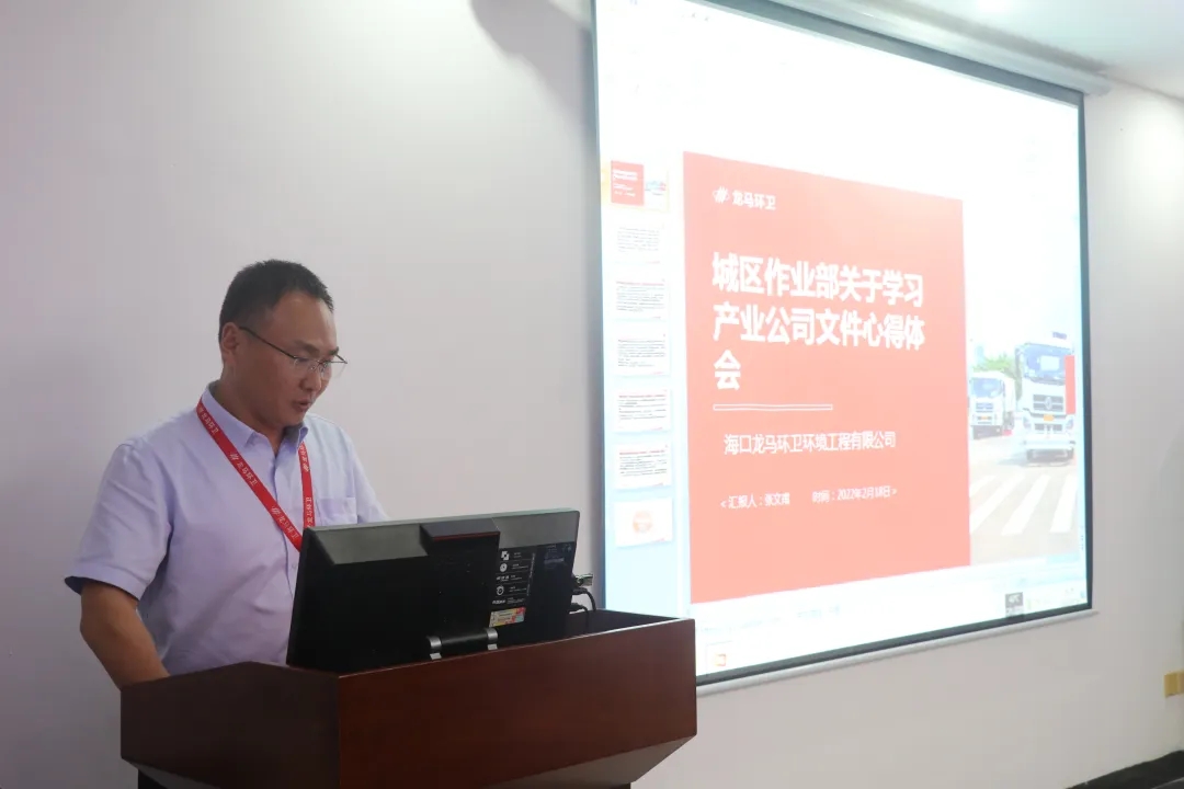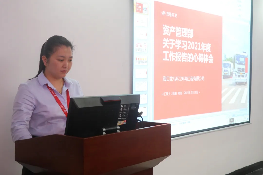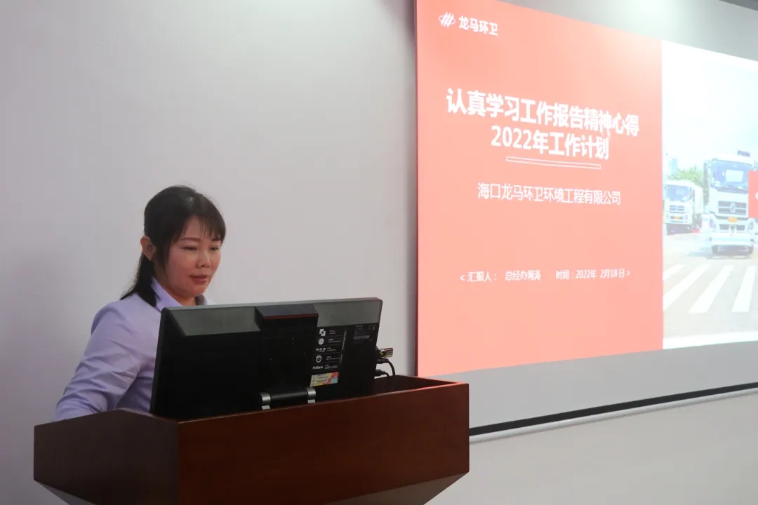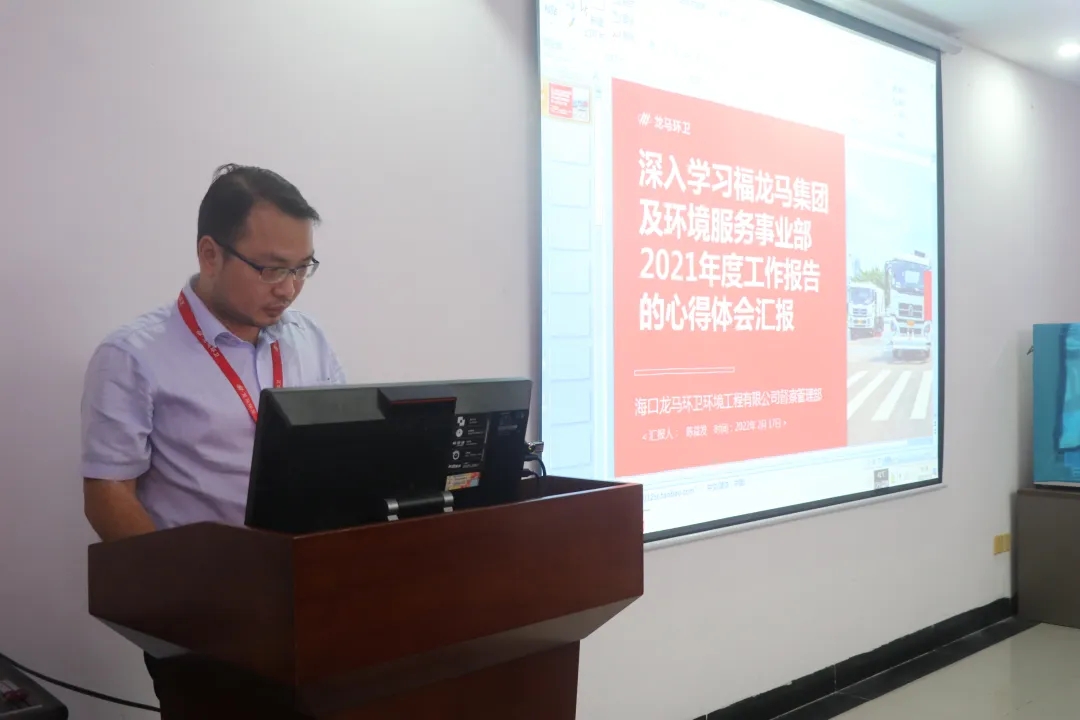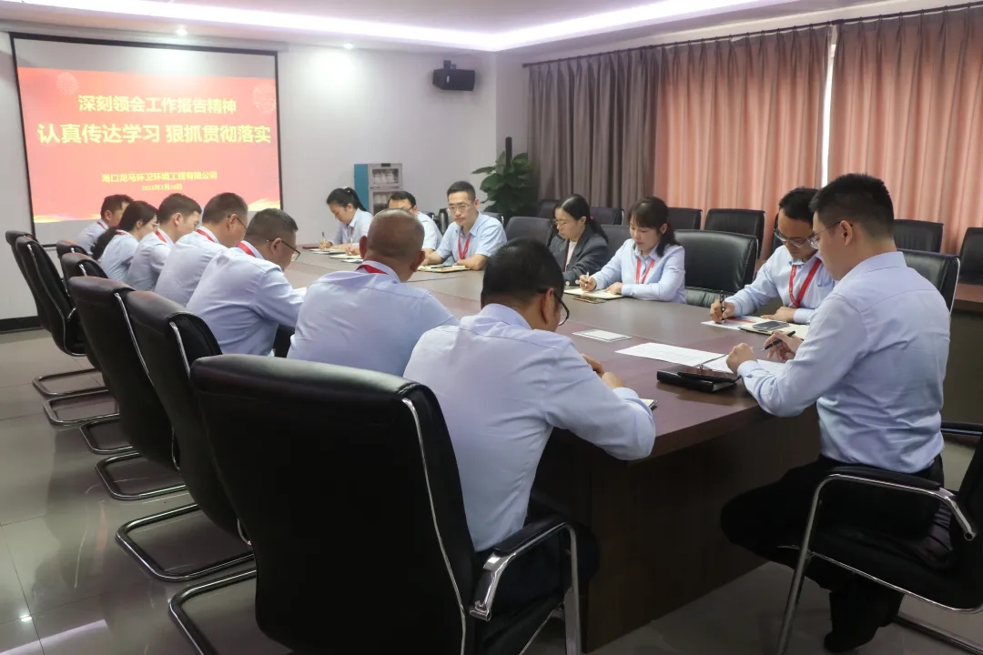 为全面深入贯彻落实集团公司和环境服务事业部工作报告精神, 2月18日下午,海口龙马环卫公司组织中层管理人员对工作报告进行学习,把全员的力量和智慧凝聚到集团公司和环境产业公司的决策部署上来。大家深入学习了工作报告文件内容,客观分析了当前公司经营形势和发展趋势,进一步明确公司2022年的工作方向和工作重心。公司总经理陈志坚、副总经理符气南、廖万凯、督查总监陈伟及各部门负责人参加会议。