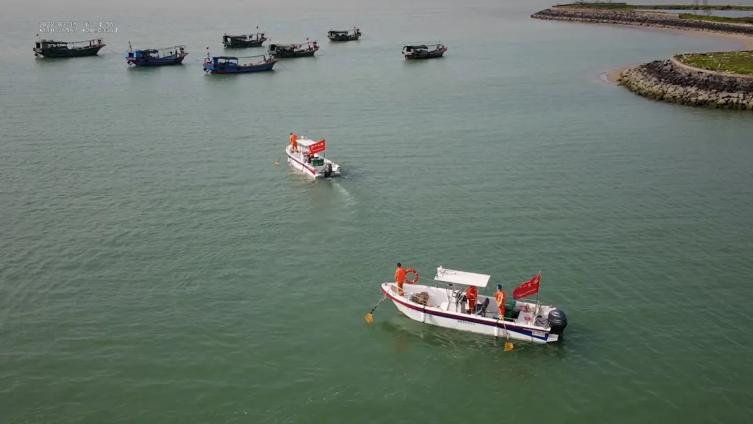 模拟水上环卫应急,发现水域污染或者有大量漂浮垃圾时,第一时间联系保洁作业船只,增派保洁作业力量,对污染区域加强作业打捞,最大限度减少对水域环境的影响。