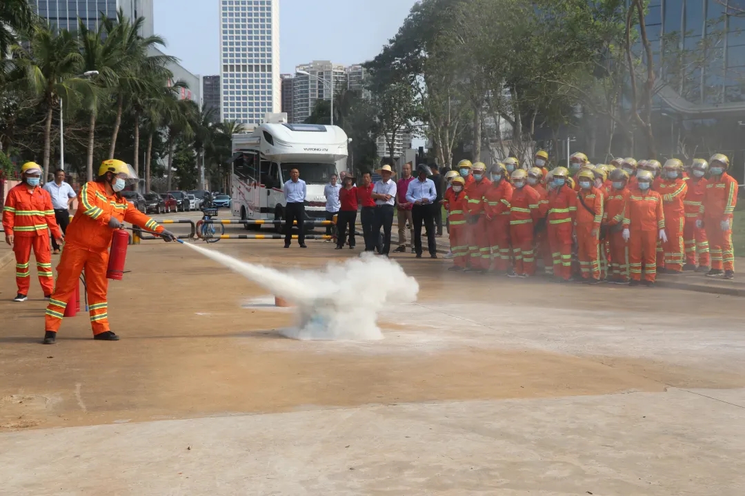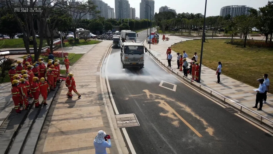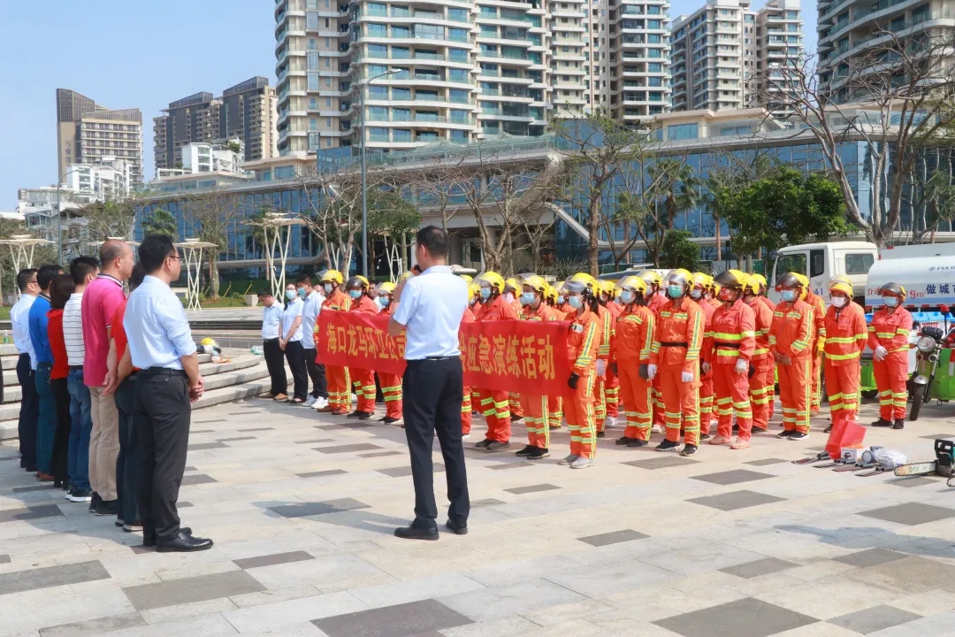 为全面提高环卫人员应对突发事件和重大自然灾害的应急能力,进一步做好防汛、防灾、消防处置工作,3月15日下午,海口龙马环卫公司在海口湾组织人员开展2022年综合应急演练活动。龙华区环卫局吴盛林副局长、林声沧主任、许峻岷大队长、祁磊主任全程指导、参与应急演练。演练项目有模拟路面两侧树木倾倒、模拟道路污染、模拟定点灭火、消防演练、水上环卫应急等项目。